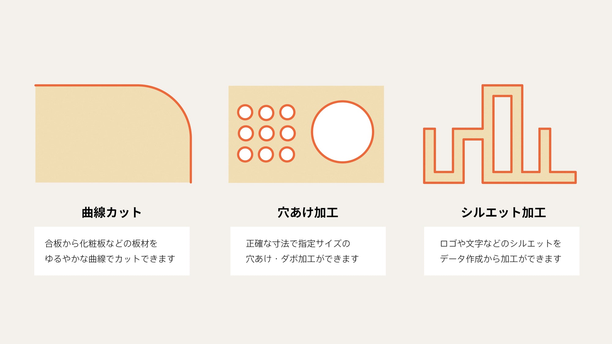 「家具のパーツをつくりたい」「模型のパネルを切り出したい」「ロゴ入りの看板をつくってみたい」